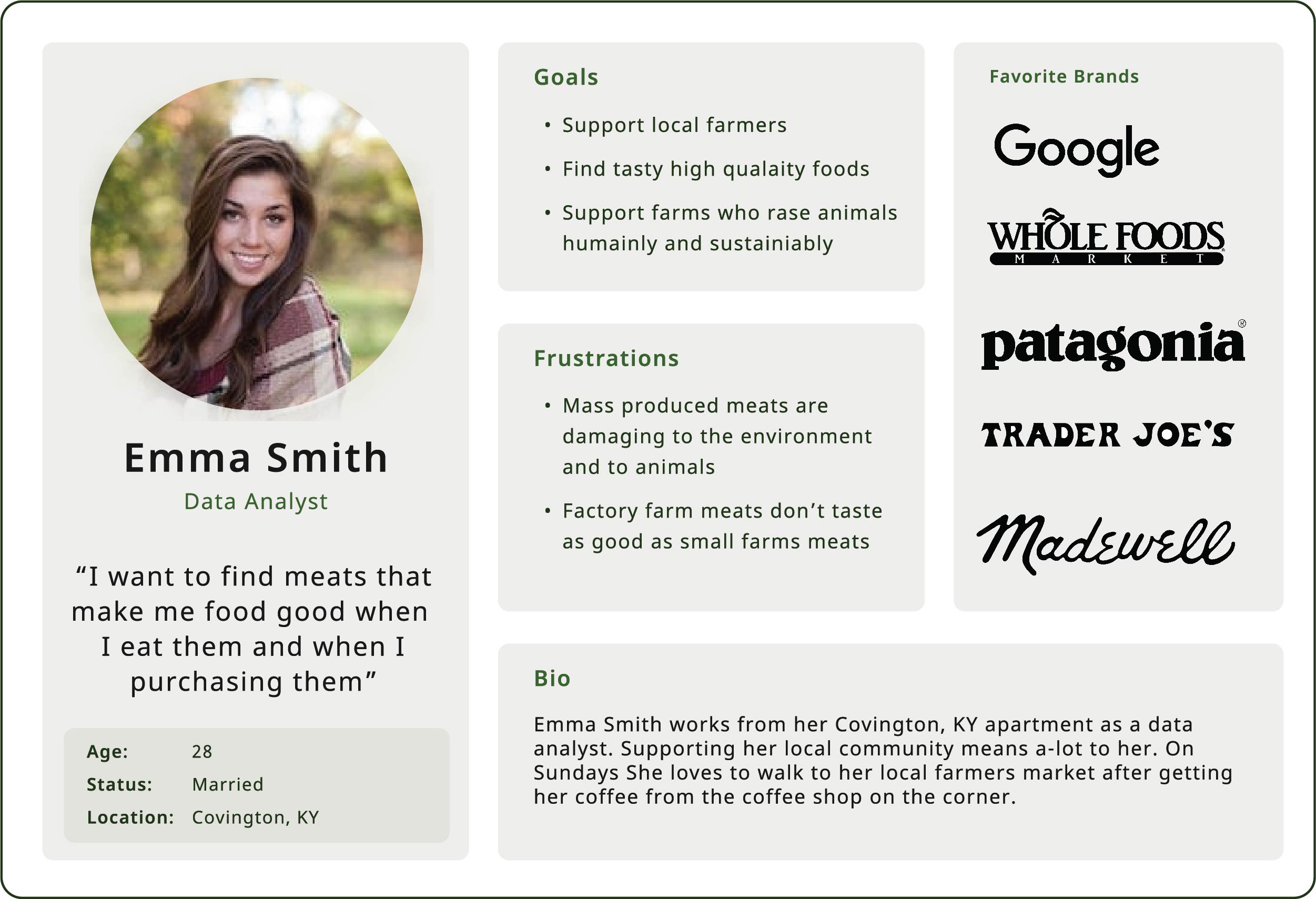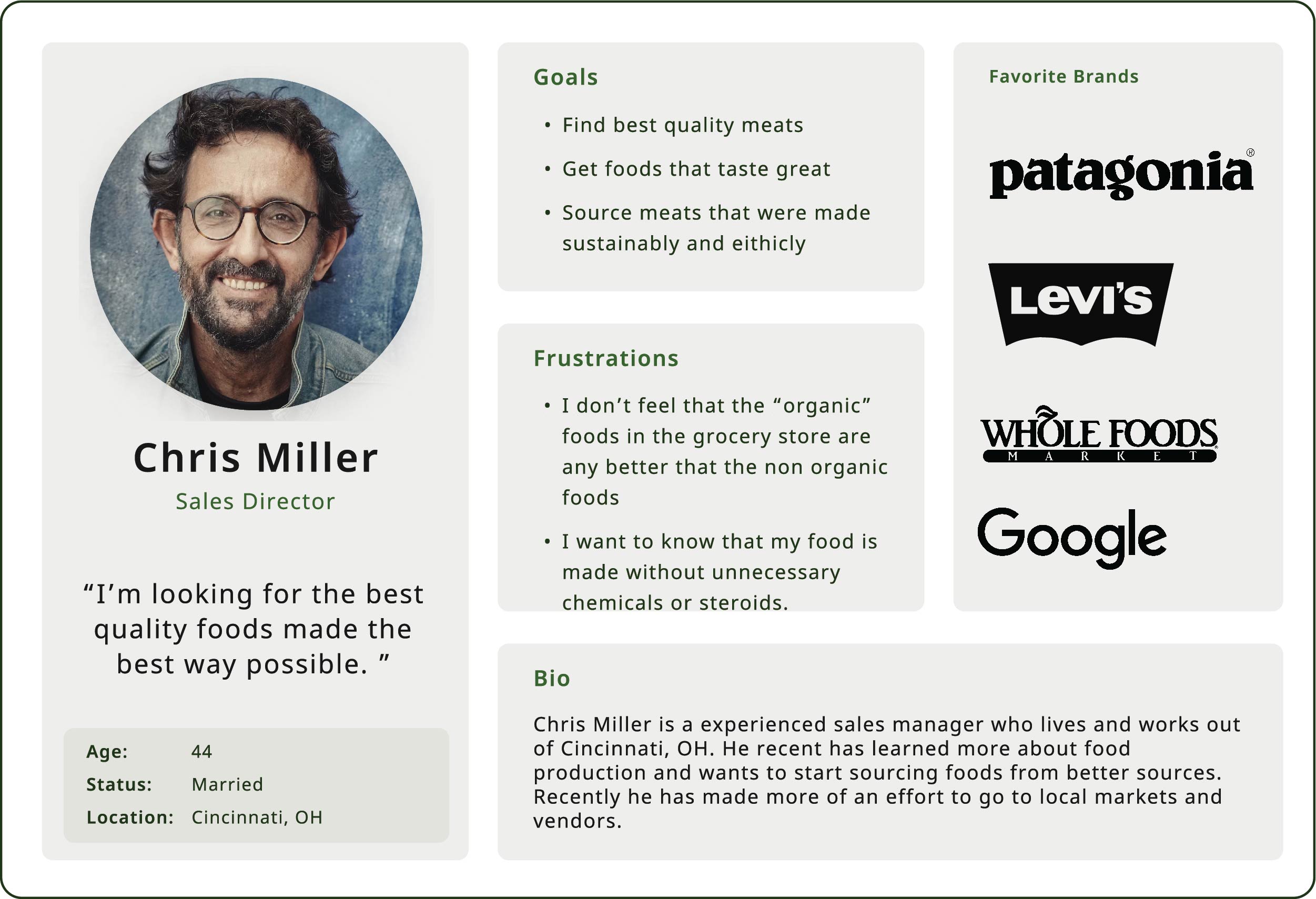 After analyzing the data we created these two user personas to represent the largest groups who attend the farmers markets. These will be used to inform design and strategy decisions moving forward.