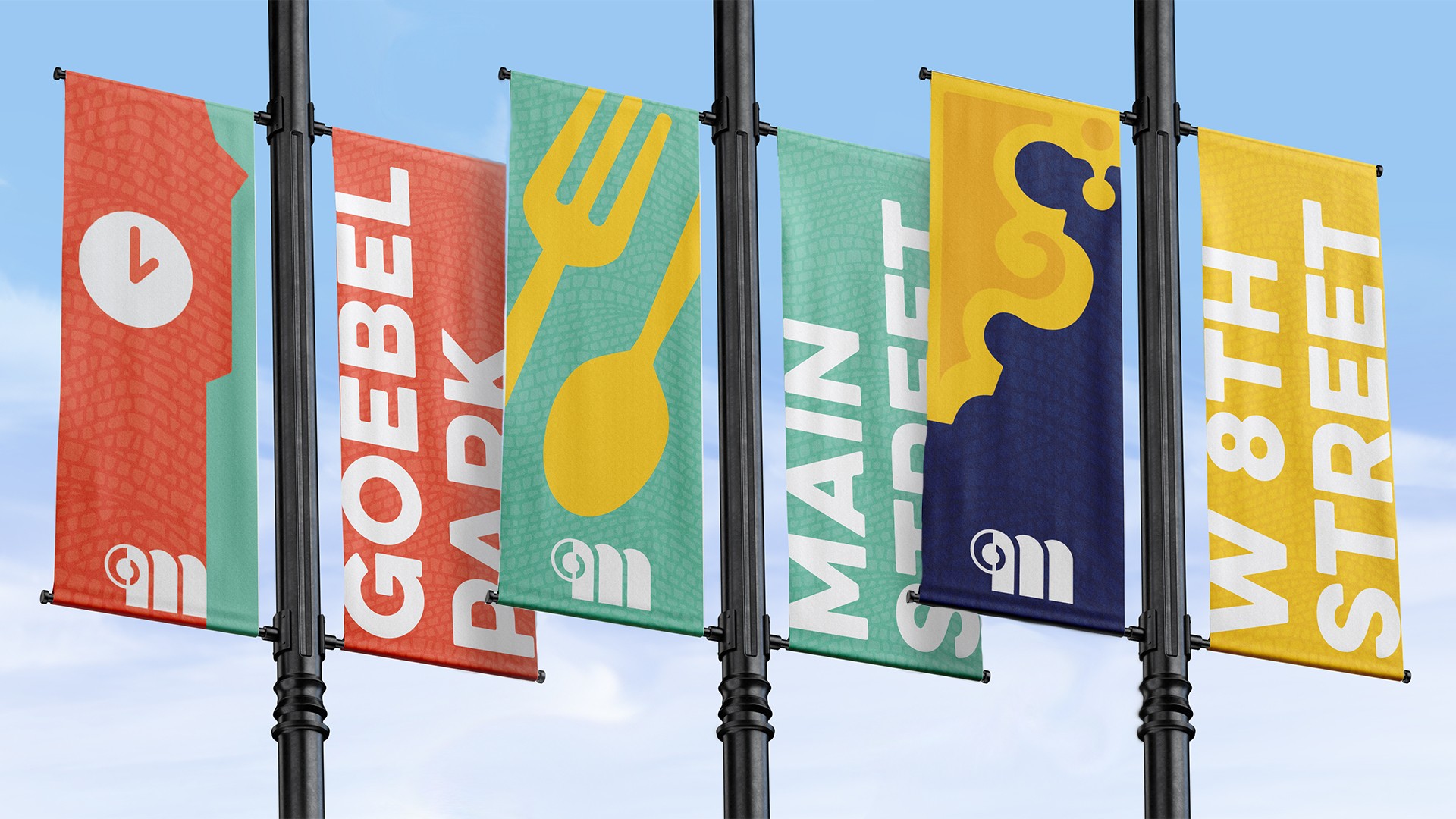 Inspired by the pervasive mosaic neighborhood identifies the mosaic pattern round out the brand. The undulating pattern harkens the the nearby river while capturing the feeling of the cobble stone streets. The pattern also add a structural element.