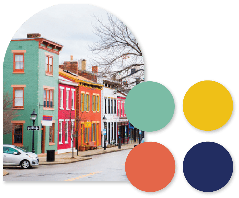 Taken from the vibrant streets of MainStrasse, the color pallet is fun, eclectic, & approachable. The colors also provide a wide range of applications and feelings.